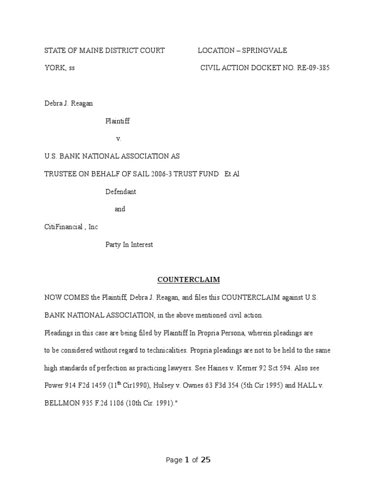 Pleadings in this case are being filed by Plaintiff In Propria Persona, wherein pleadings are