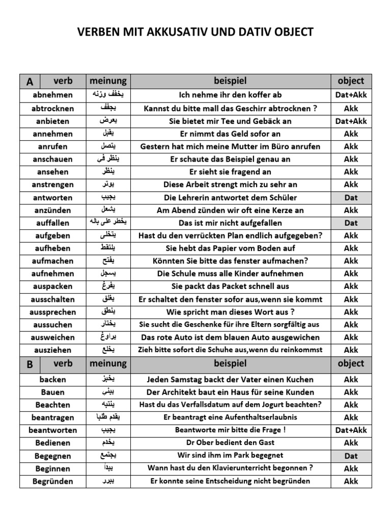 VERBEN MIT AKKUSATIV UND DATIV OBJECT