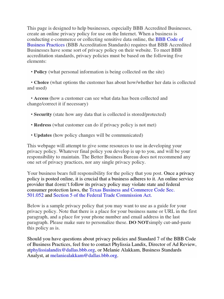 Businesses have some sort of privacy policy on their website. To meet BBB