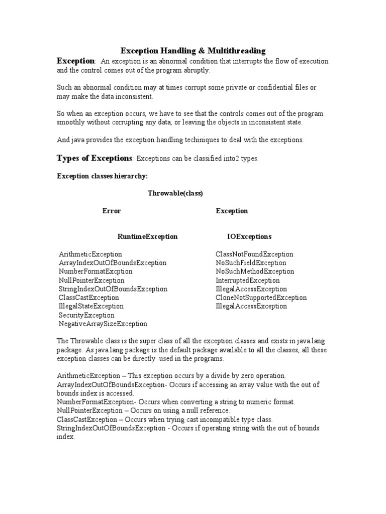 Exception Handling & Multithreading