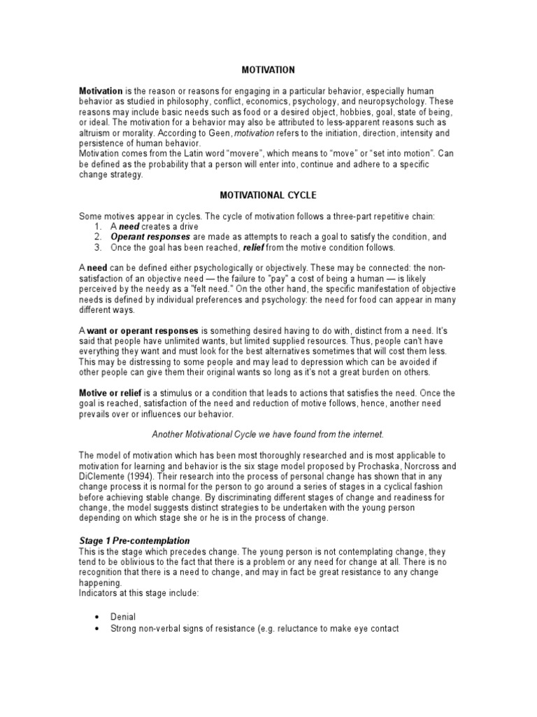 Motivation is the reason or reasons for engaging in a particular behavior, especially human