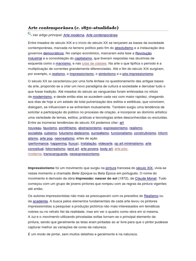 por exemplo, o realismo, o impressionismo, o simbolismo e o ps-impressionismo.