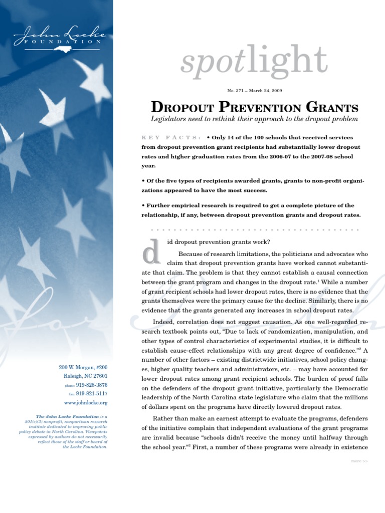 claim that dropout prevention grants have worked cannot substanti-
