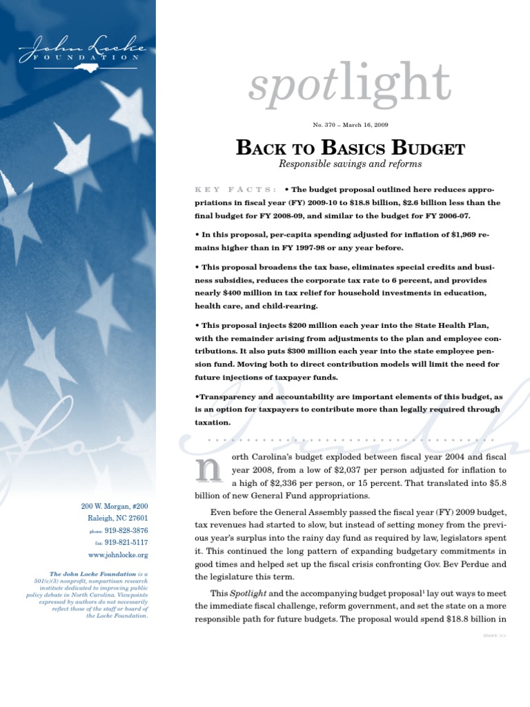 policy debate in North Carolina. Viewpoints This Spotlight and the accompanying budget proposal1 lay out ways to meet