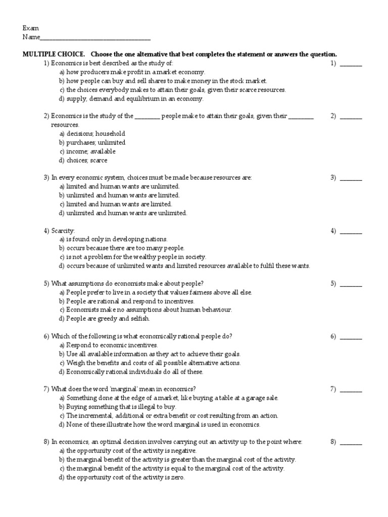 5) What assumptions do economists make about people? 5) _______