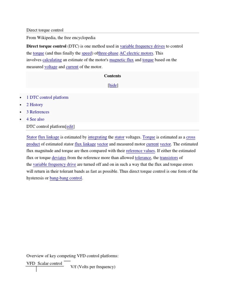 Direct torque control (DTC) is one method used in variable frequency drives to control