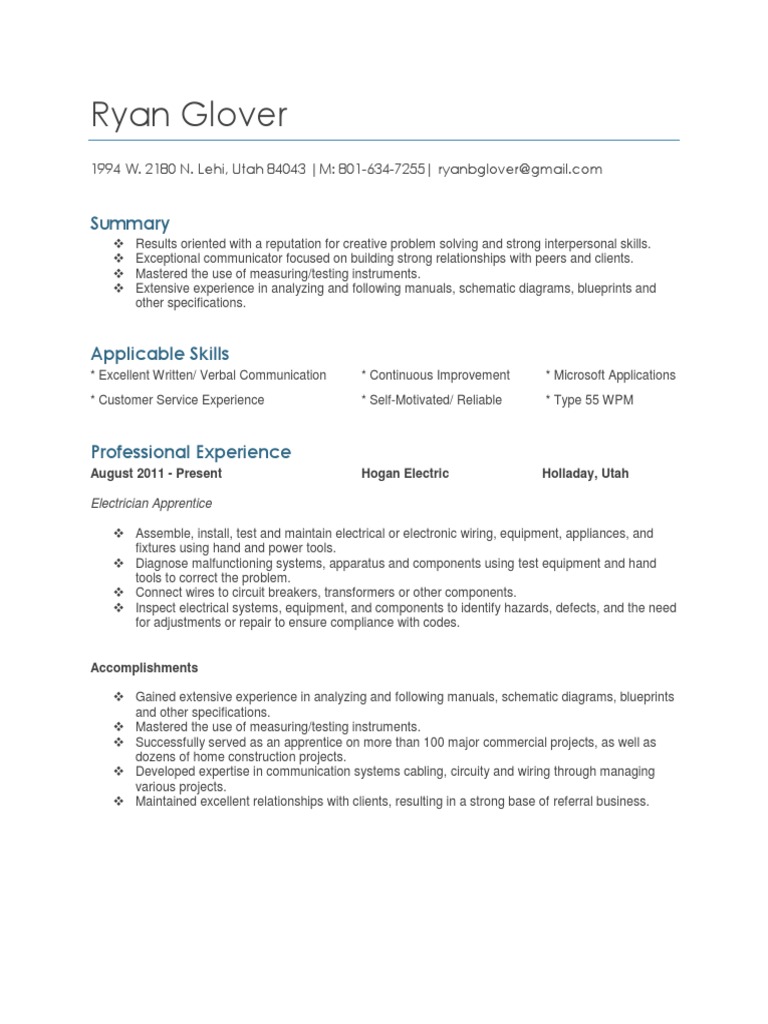 Extensive experience in analyzing and following manuals, schematic diagrams, blueprints and