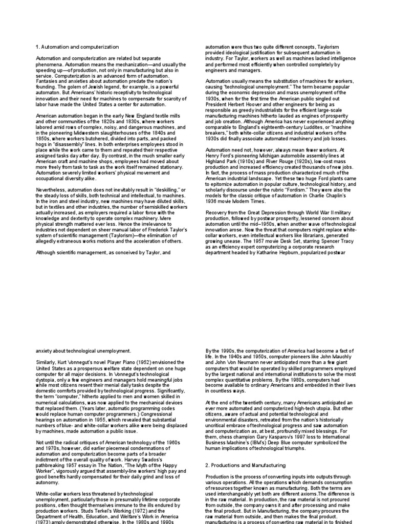 automation were thus two quite different concepts, Taylorism