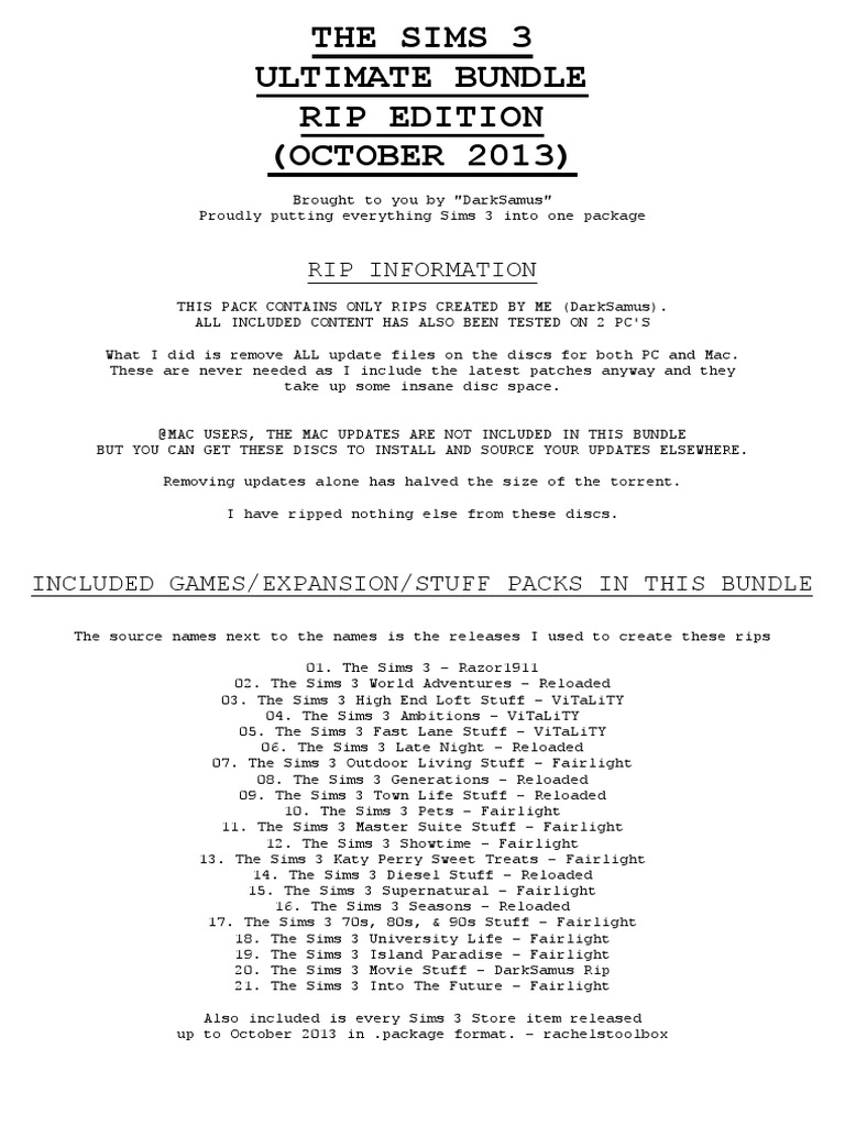 INCLUDED GAMES/EXPANSION/STUFF PACKS IN THIS BUNDLE