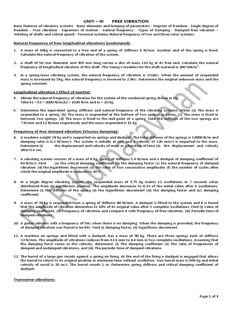 UNIT III FREE VIBRATION