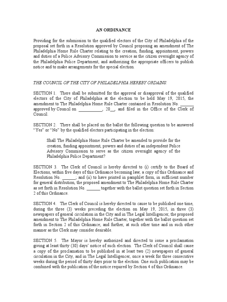 THE COUNCIL OF THE CITY OF PHILADELPHIA HEREBY ORDAINS: