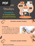 and endure a mental agony. Eve-teasing is an act of perversion that includes actions like touching,