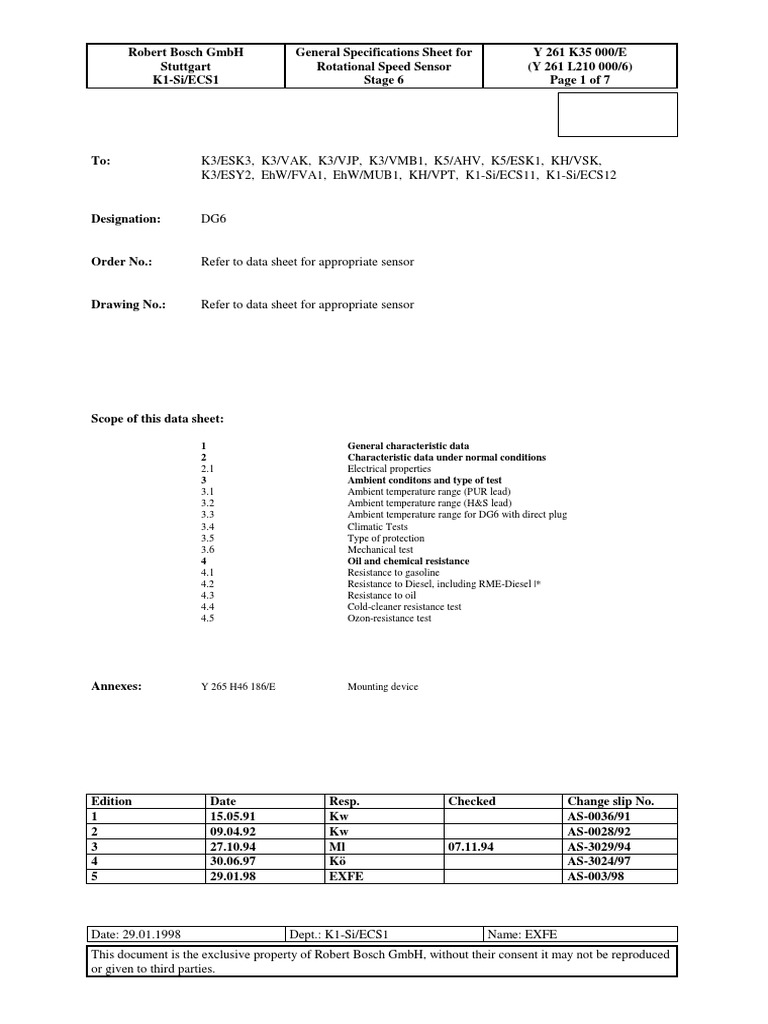 This document is the exclusive property of Robert Bosch GmbH, without their consent it may not be reproduced