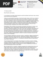 A letter about monitoring attendance is sent to parents/carers by the HT if attendance