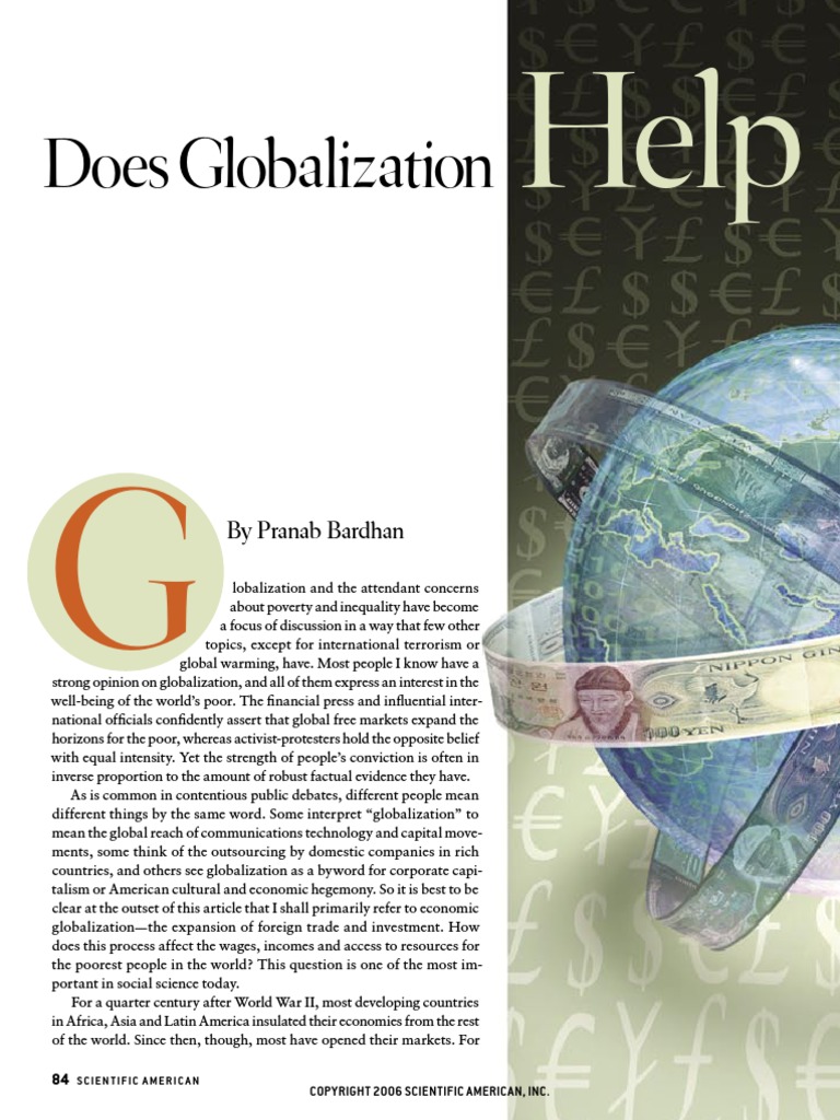 The Impact of Globalization on the Poor. Pranab Bardhan in Globalization, Poverty, and Inequality.
