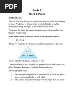1. (a) (i) Work is the product of an applied force (F) and displacement (s) of an