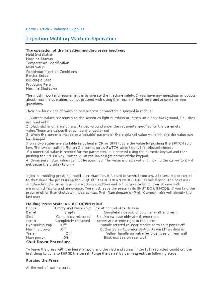Injection Molding Machine Operation