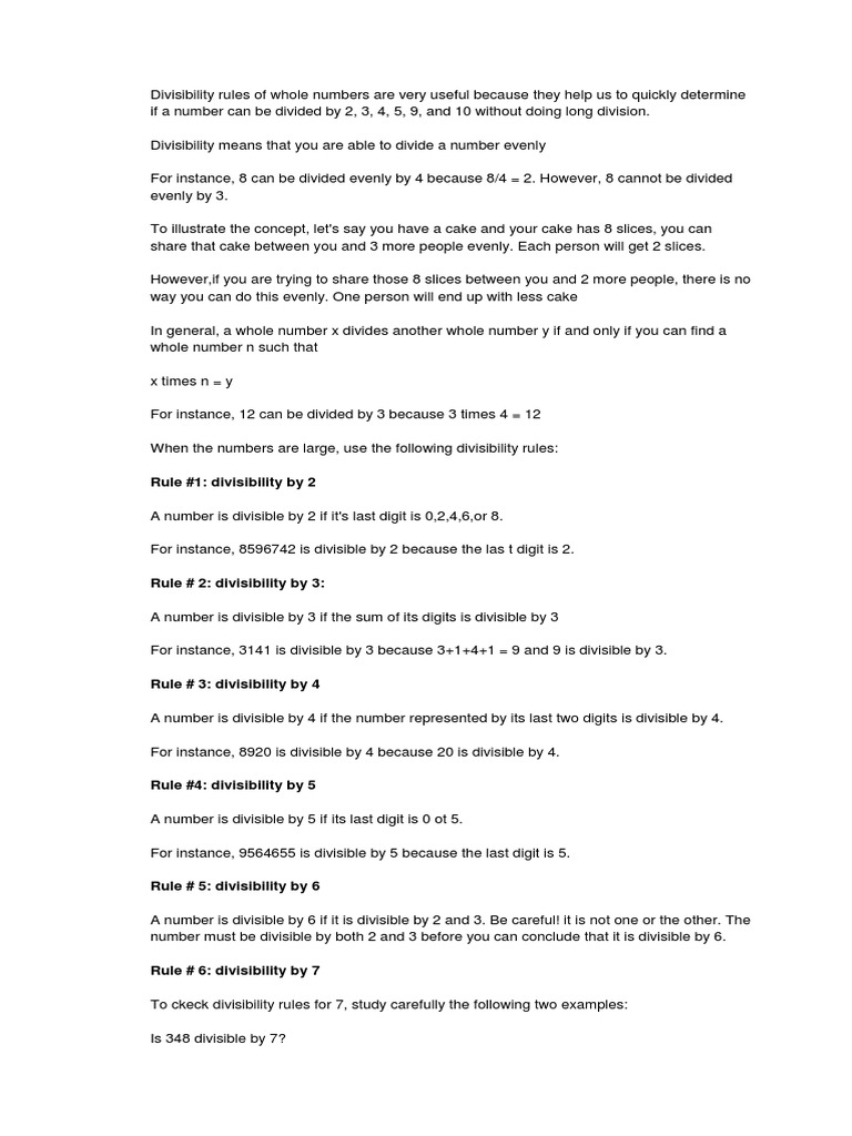 Divisibility rules of whole numbers are very useful because they help us to quickly determine