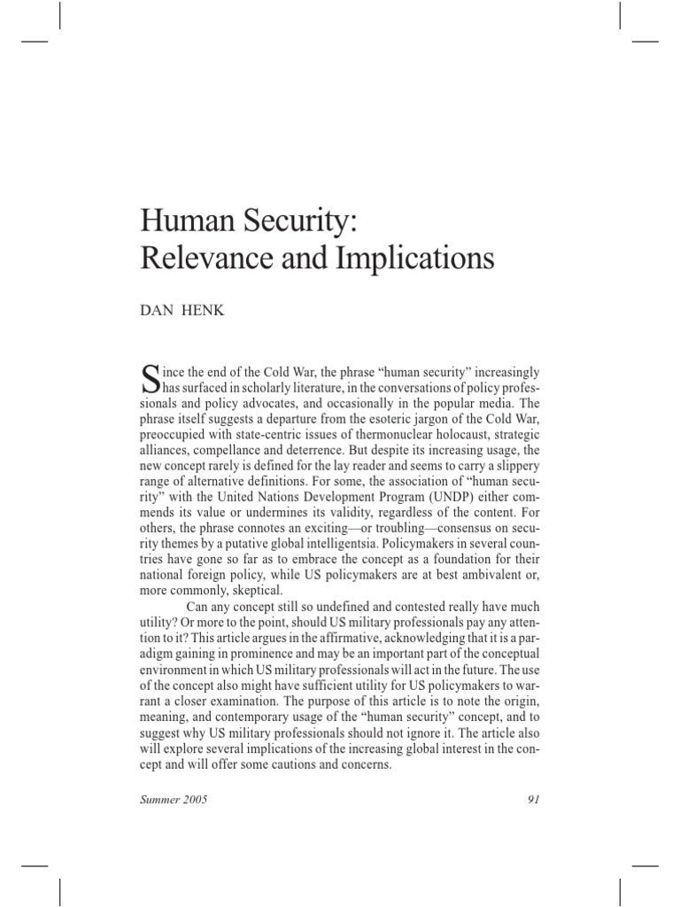 meaning, and contemporary usage of the human security concept, and to