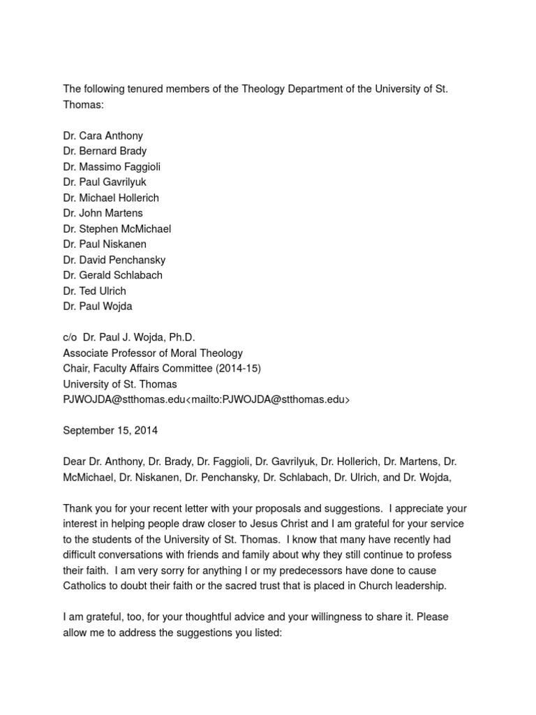 Dear Dr. Anthony, Dr. Brady, Dr. Faggioli, Dr. Gavrilyuk, Dr. Hollerich, Dr. Martens, Dr.