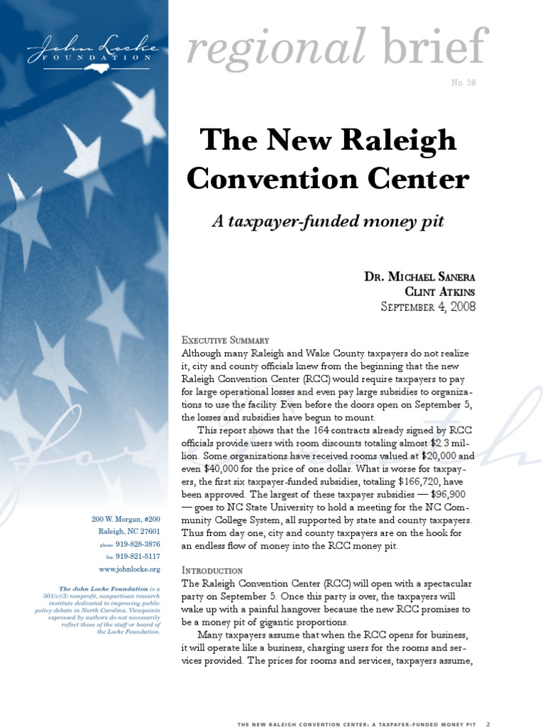T h e N e w R a l e i g h C o n v e nt i o n C e nt e r : A Ta x pay e r - F u n d e d M o n e y P i t