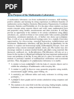 * Helping in the establishment and maintaining of Mathematics laboratory.
