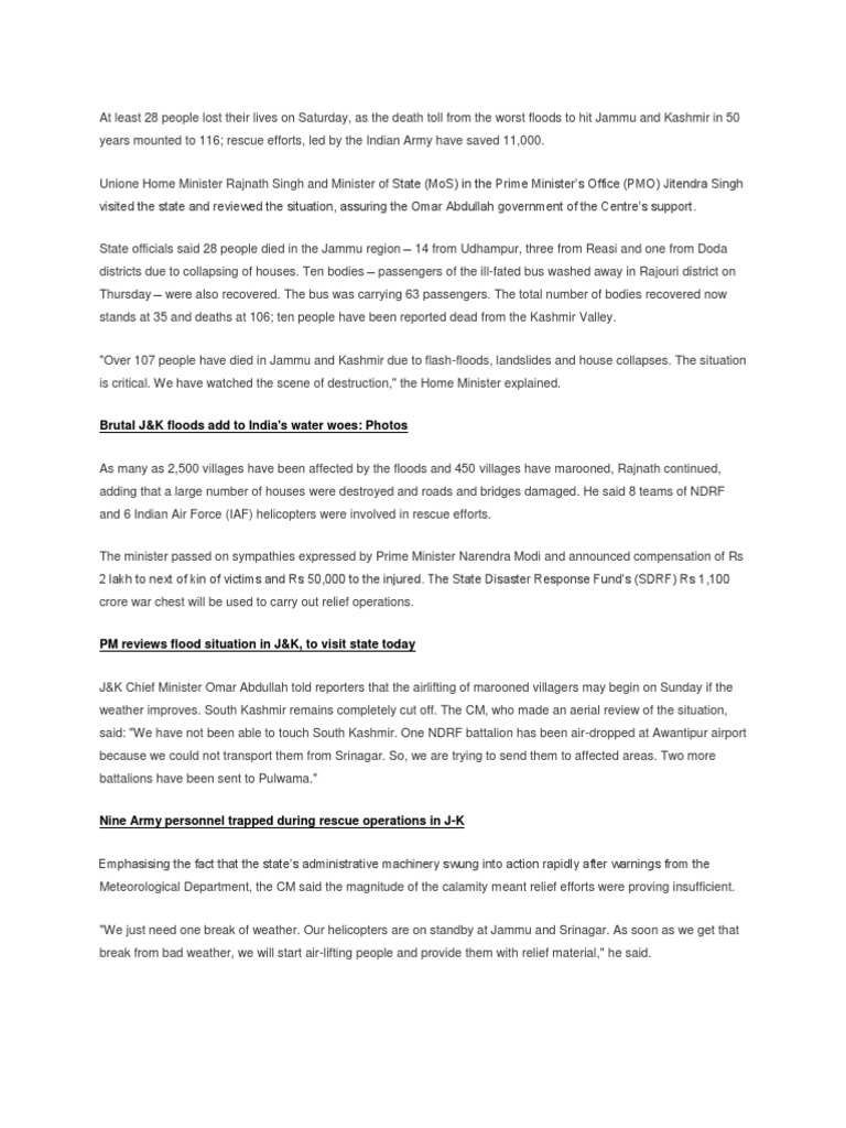 "Over 107 people have died in Jammu and Kashmir due to flash-floods, landslides and house collapses. The situation