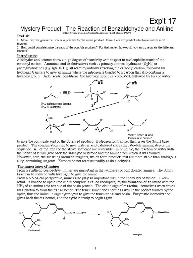 1. More than one geometric isomer is possible for the imine product. Draw them and predict which one will be most