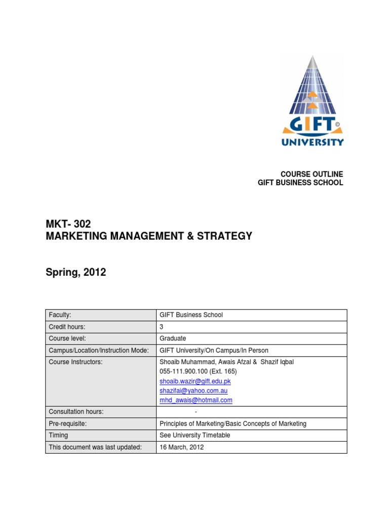 The course is aimed at helping students look at the entire marketing mix in light of the strategy of the firm.