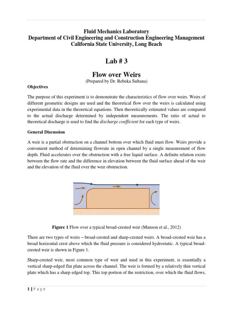 The purpose of this experiment is to demonstrate the characteristics of flow over weirs. Weirs of
