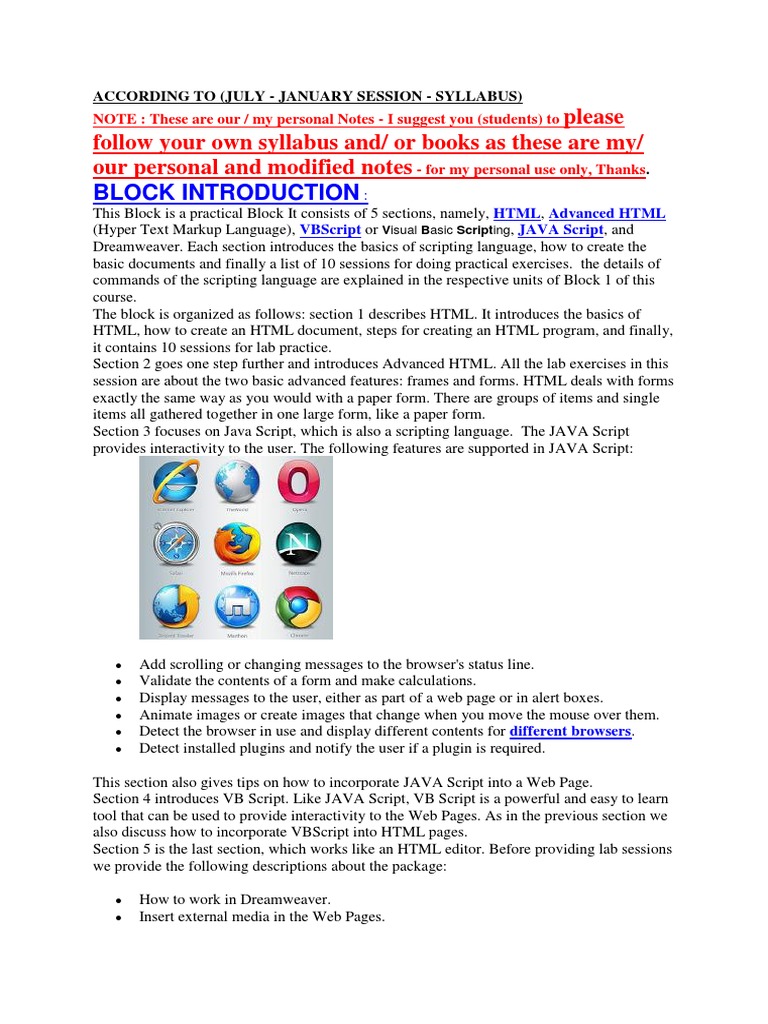 (Hyper Text Markup Language), VBScript or Visual Basic Scripting, JAVA Script, and