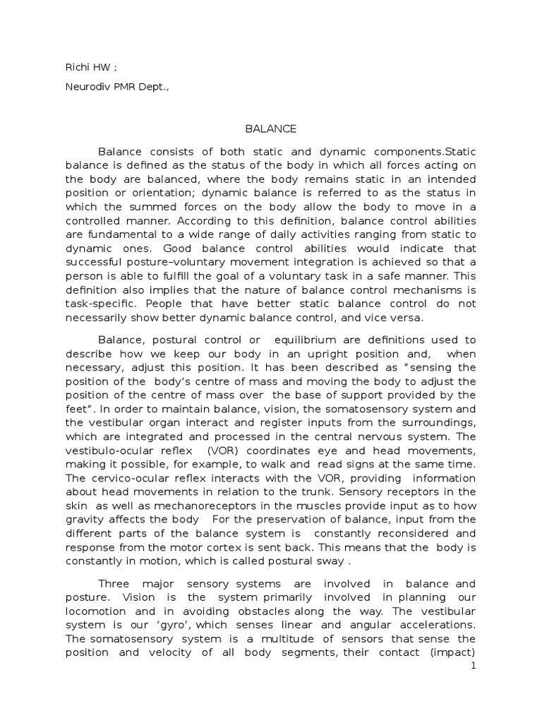Balance, postural control or e-uili!riu# are de%nitions used to