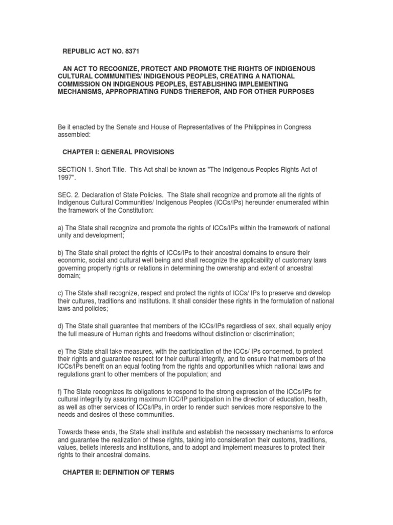 SECTION 1. Short Title. This Act shall be known as "The Indigenous Peoples Rights Act of