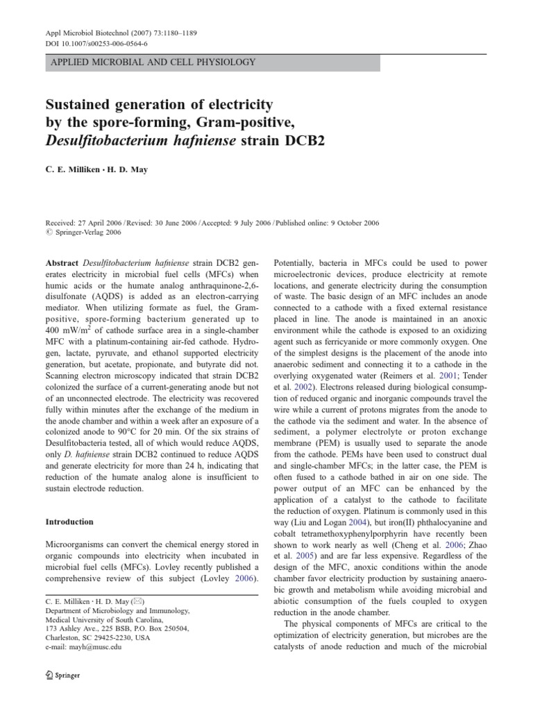 Bond DR et al (2002) Electrode-reducing microorganisms that harvest