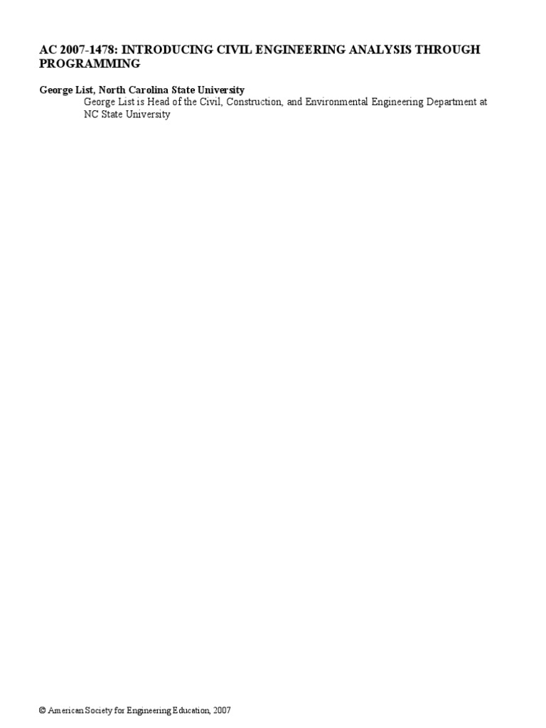 AC 2007-1478: INTRODUCING CIVIL ENGINEERING ANALYSIS THROUGH
