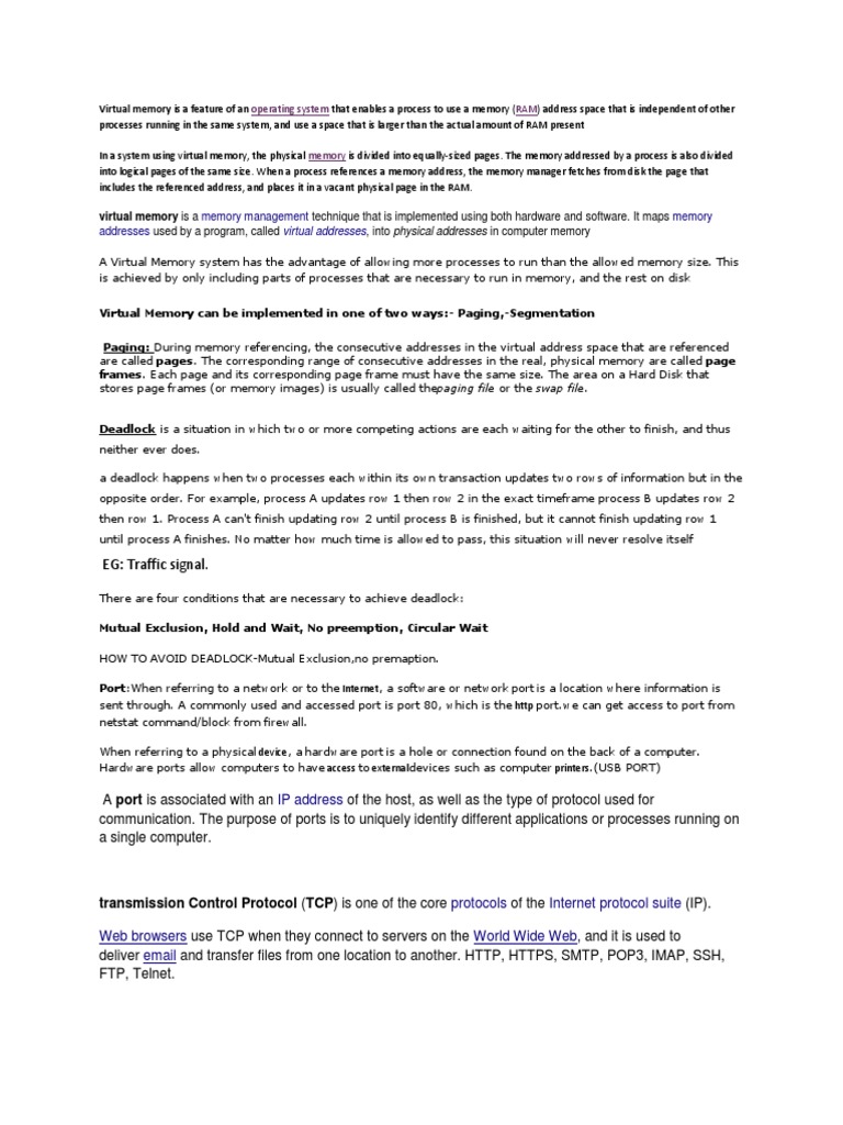 Virtual memory is a feature of an operating system that enables a process to use a memory (RAM) address space that is independent