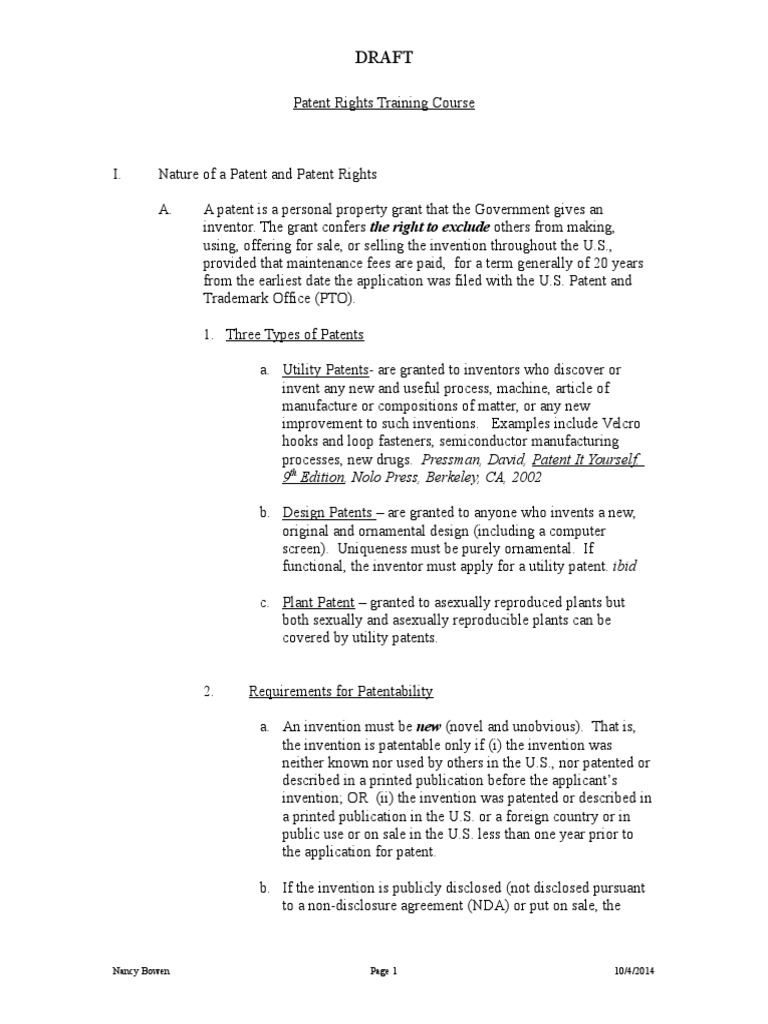 I. Nature of a Patent and Patent Rights