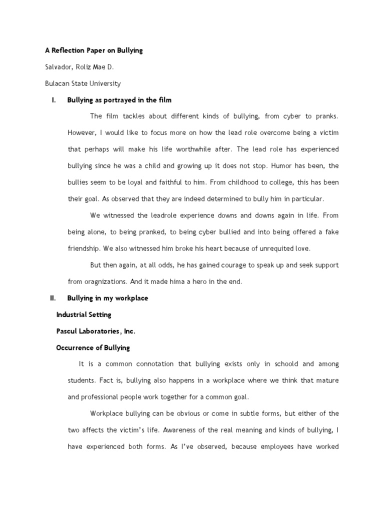 A Reflection Paper on Bullying