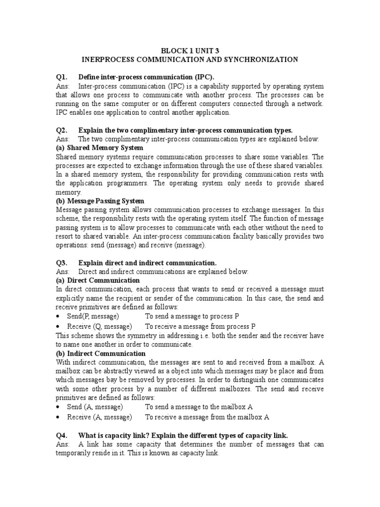 Ans: The two complimentary inter-process communication types are e!plained below: