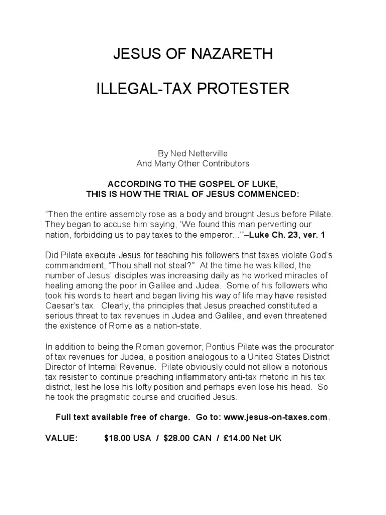 JESUS OF NAZARETHILLEGAL-TAX PROTESTER