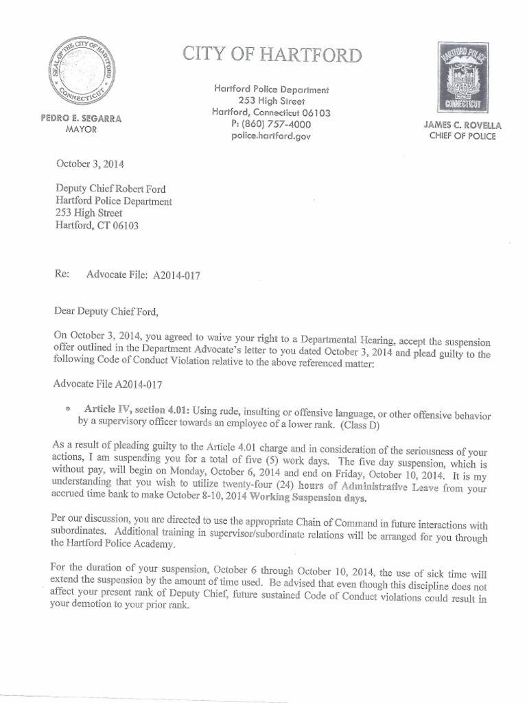 Chief Rovella's Discipline letter