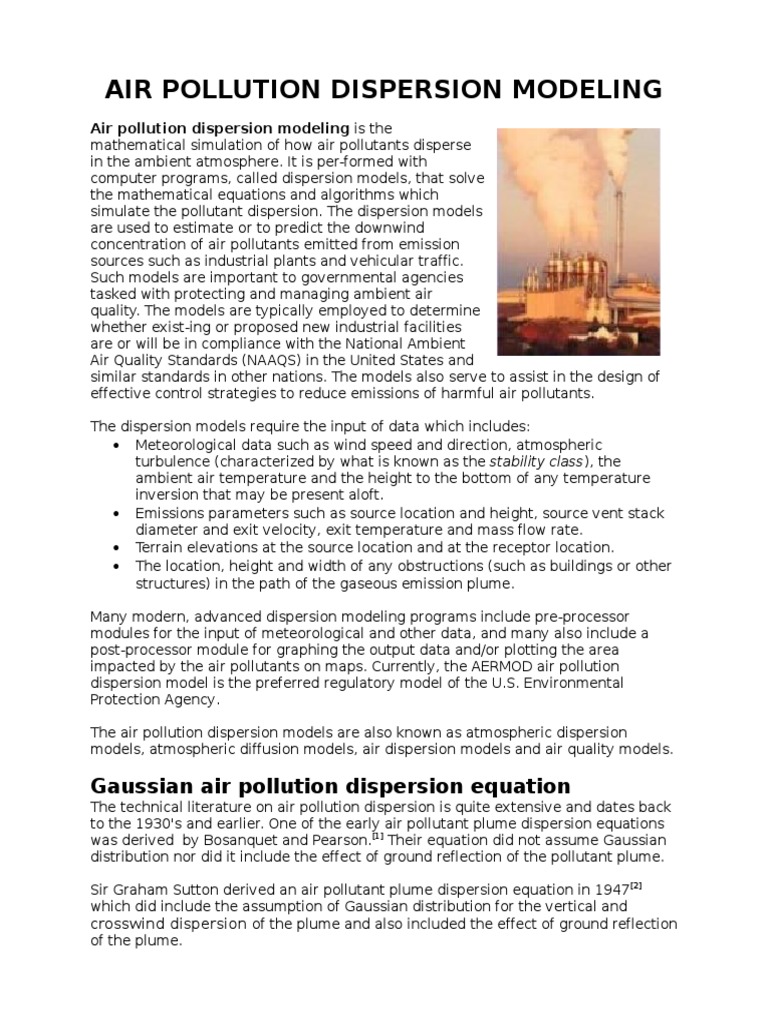 models, atmospheric diffusion models, air dispersion models and air quality models.