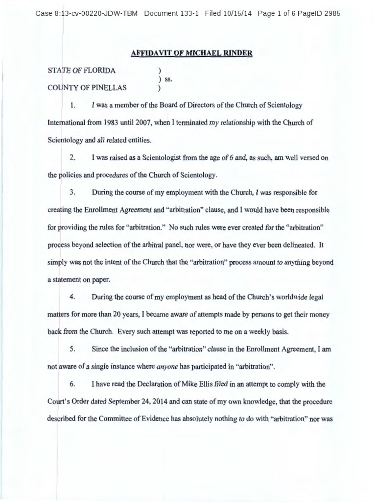 Case 8:13-cv-00220-JDW-TBM Document 133-1 Filed 10/15/14 Page 1 of 6 PageID 2985
