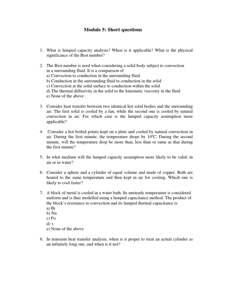 1. What is lumped capacity analysis? When is it applicable? What is the physical