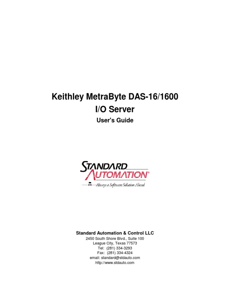 The Standard Automation & Control LLC Keithley MetraByte DAS-16/1600 I/O Server is a Microsoft