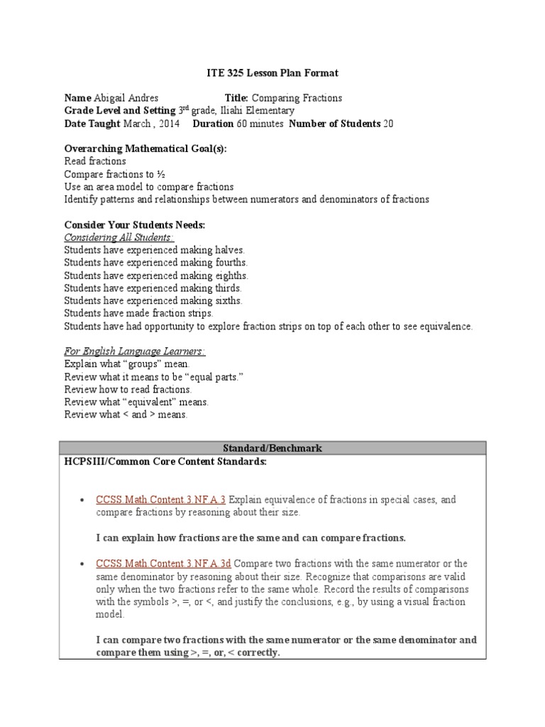 ITE 325 Lesson Plan Format