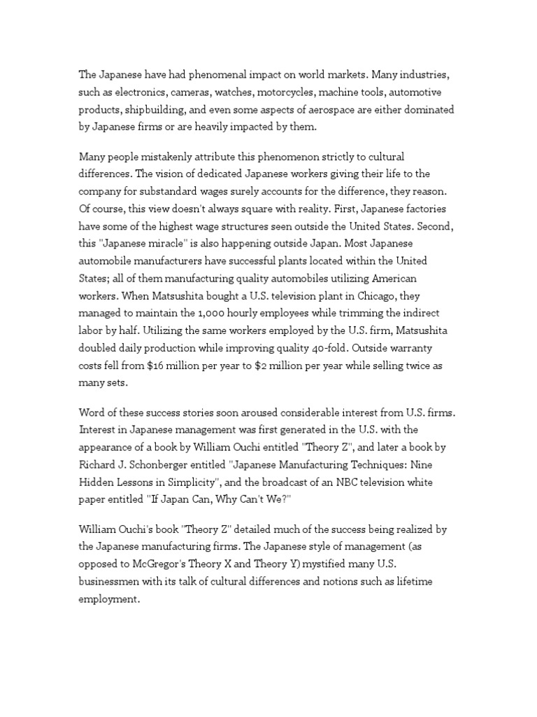 William Ouchi's book "Theory Z" detailed much of the success being realized by