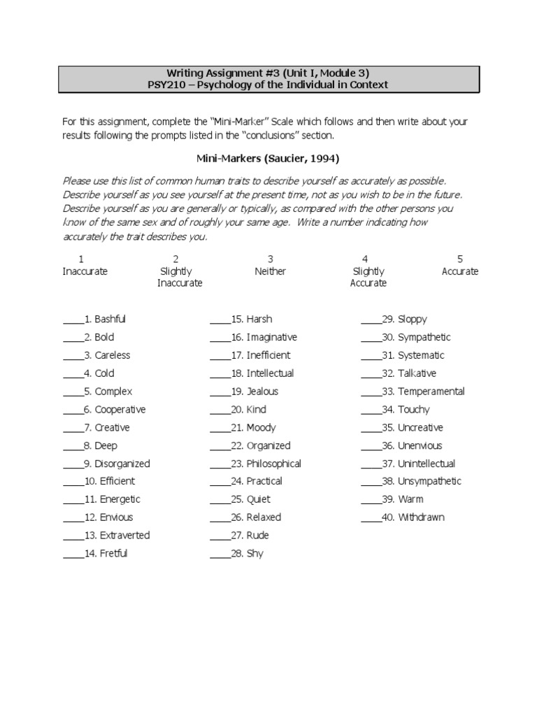 For this assignment, complete the Mini-Marker Scale which follows and then write about your