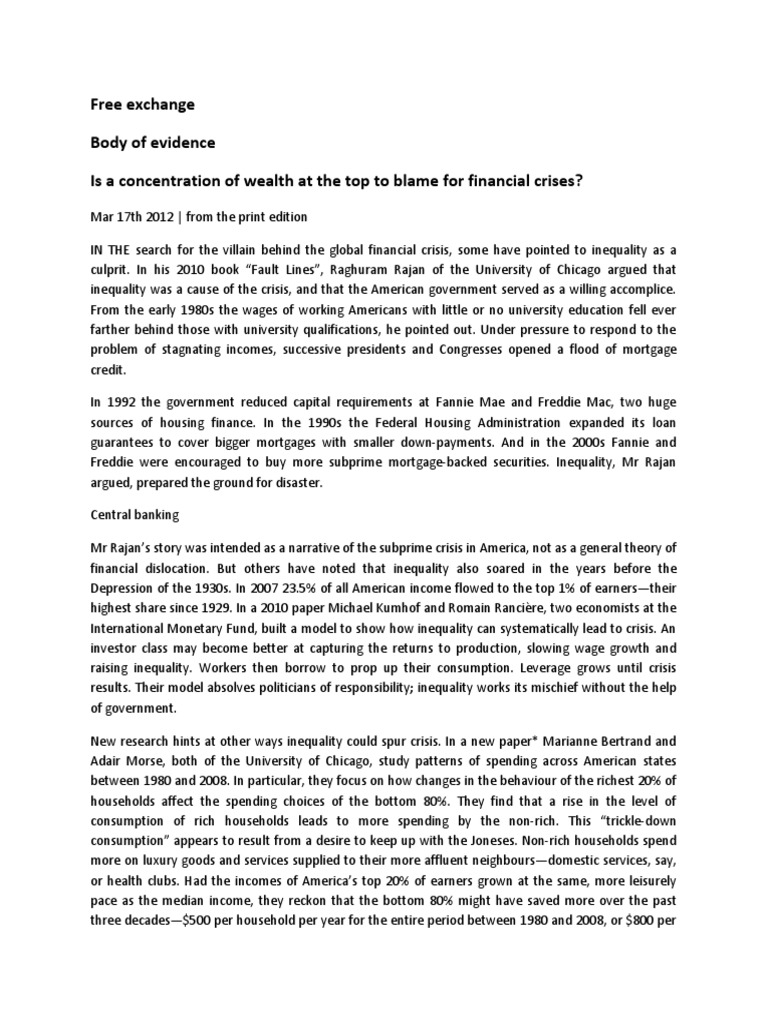 IN THE search for the villain behind the global financial crisis, some have pointed to ine!alit" as a