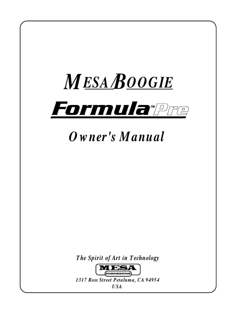 Mesa/Boogie Formula Pre-Amp Manual